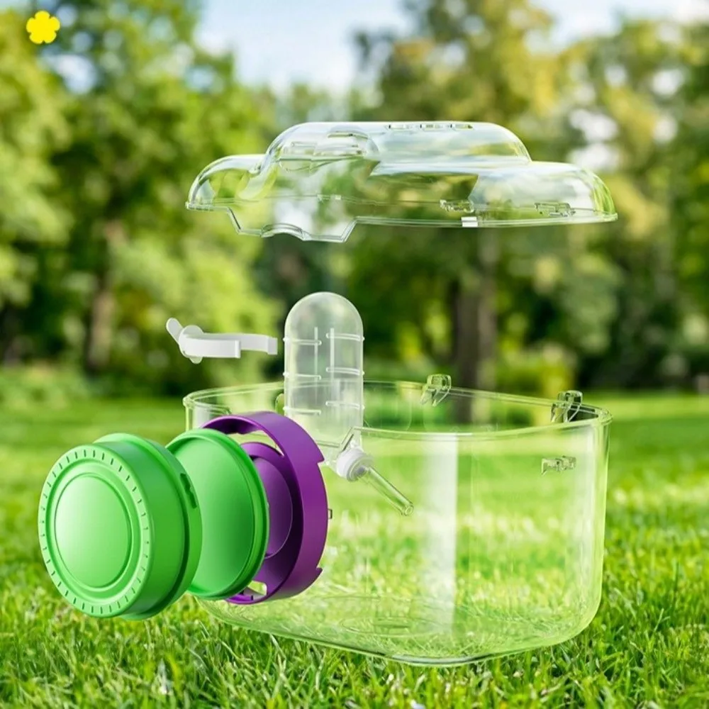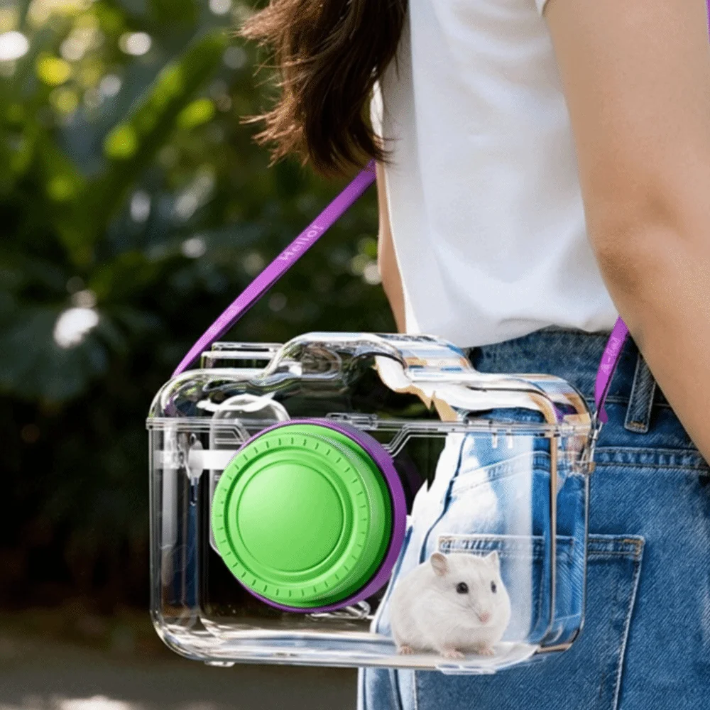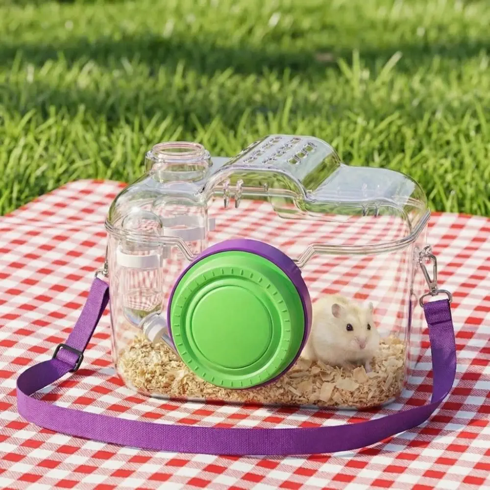 Transparent Hamster Carriers Cage Ventilated with Water Bottle Travel Hamster Carrier Adjustable Strap Food Bowl