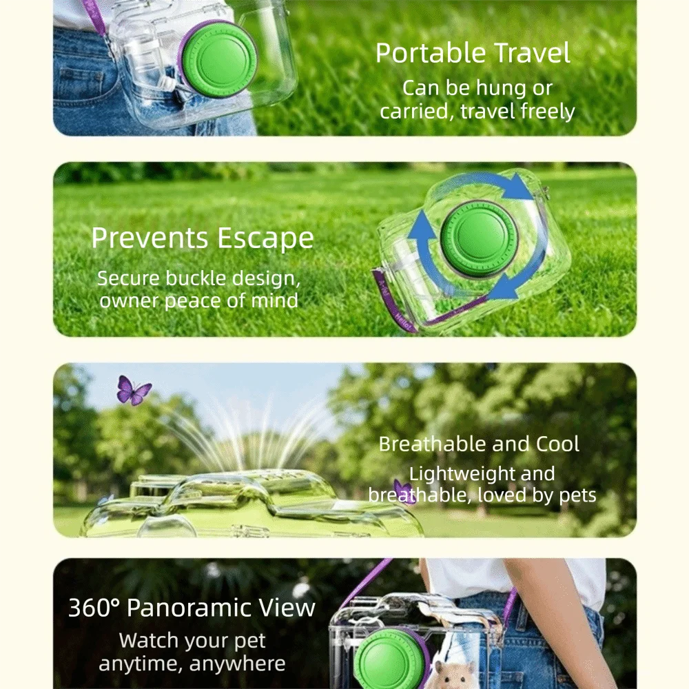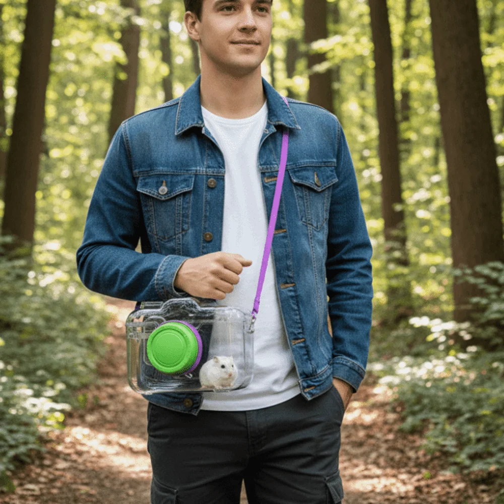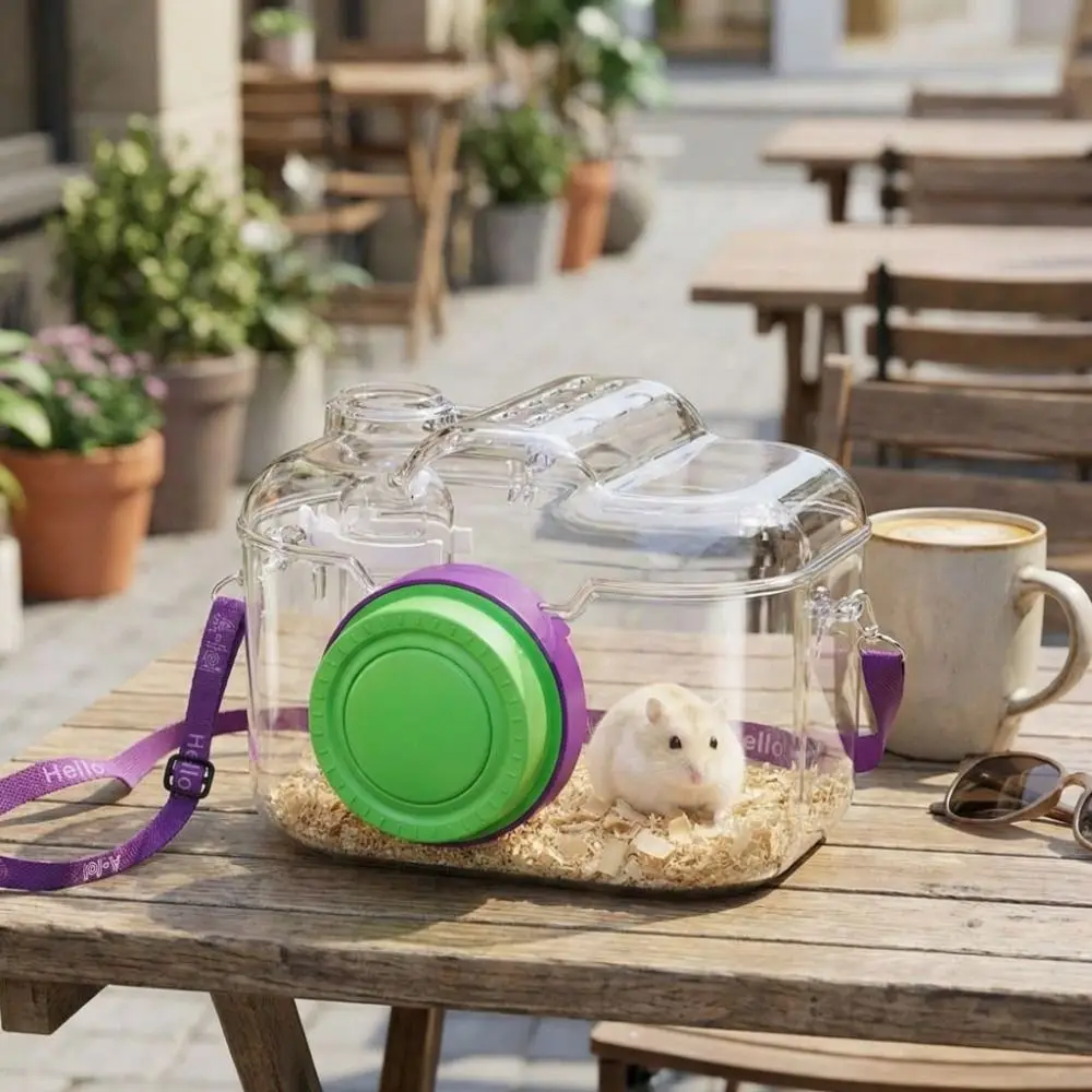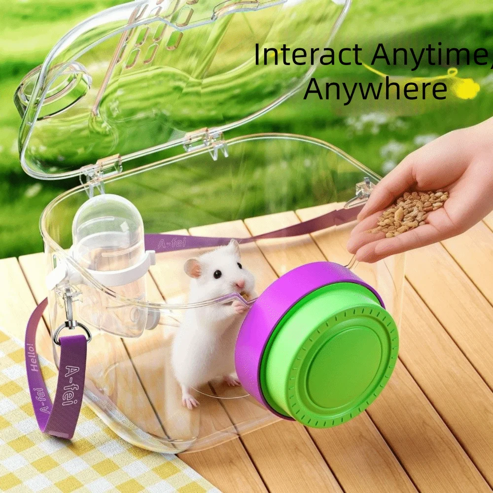 Transparent Hamster Carriers Cage Ventilated with Water Bottle Travel Hamster Carrier Adjustable Strap Food Bowl
