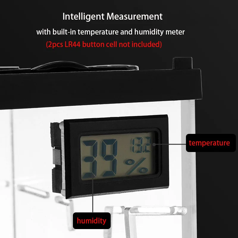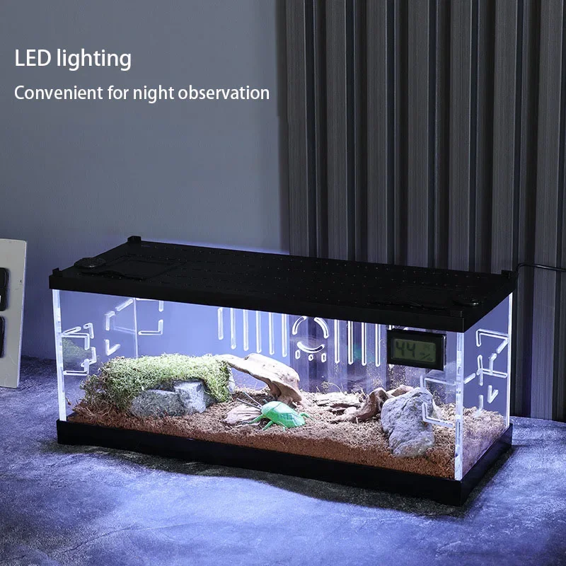 5. Built-In LED Lighting and Temperature and Humidity Meter – Enhance visibility and create a natural habitat with the integrated **LED lighting** system. Perfect for nocturnal pets or adding aesthetic appeal to your setup.