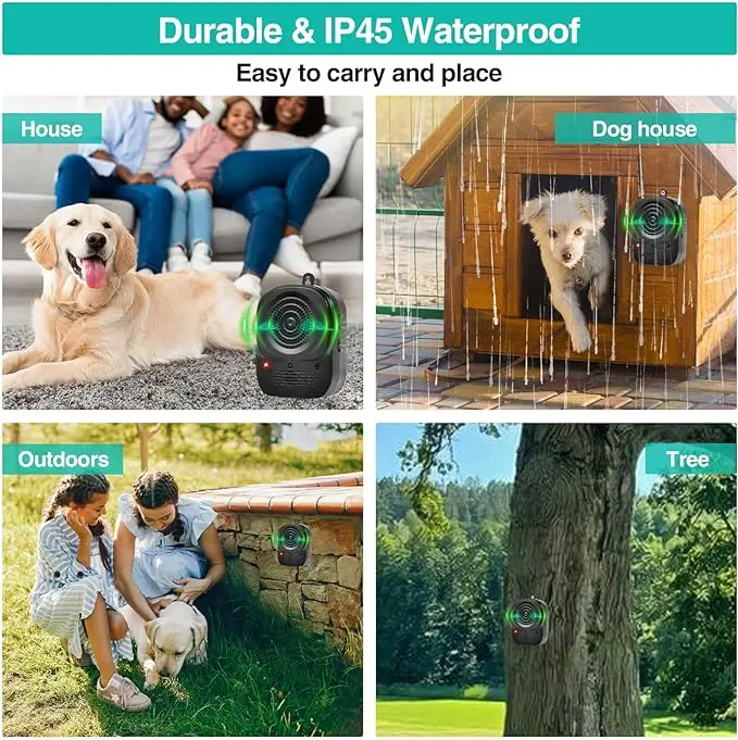 3.Robust Outdoor Build: Specifically engineered for outdoor use, our dog bark stopper is both durable and waterproof. With four sensitivity levels to cover a range of 4.5 to 15.24 meters and a test mode, it's designed to withstand the elements while providing optimal bark control for any outdoor setting.
