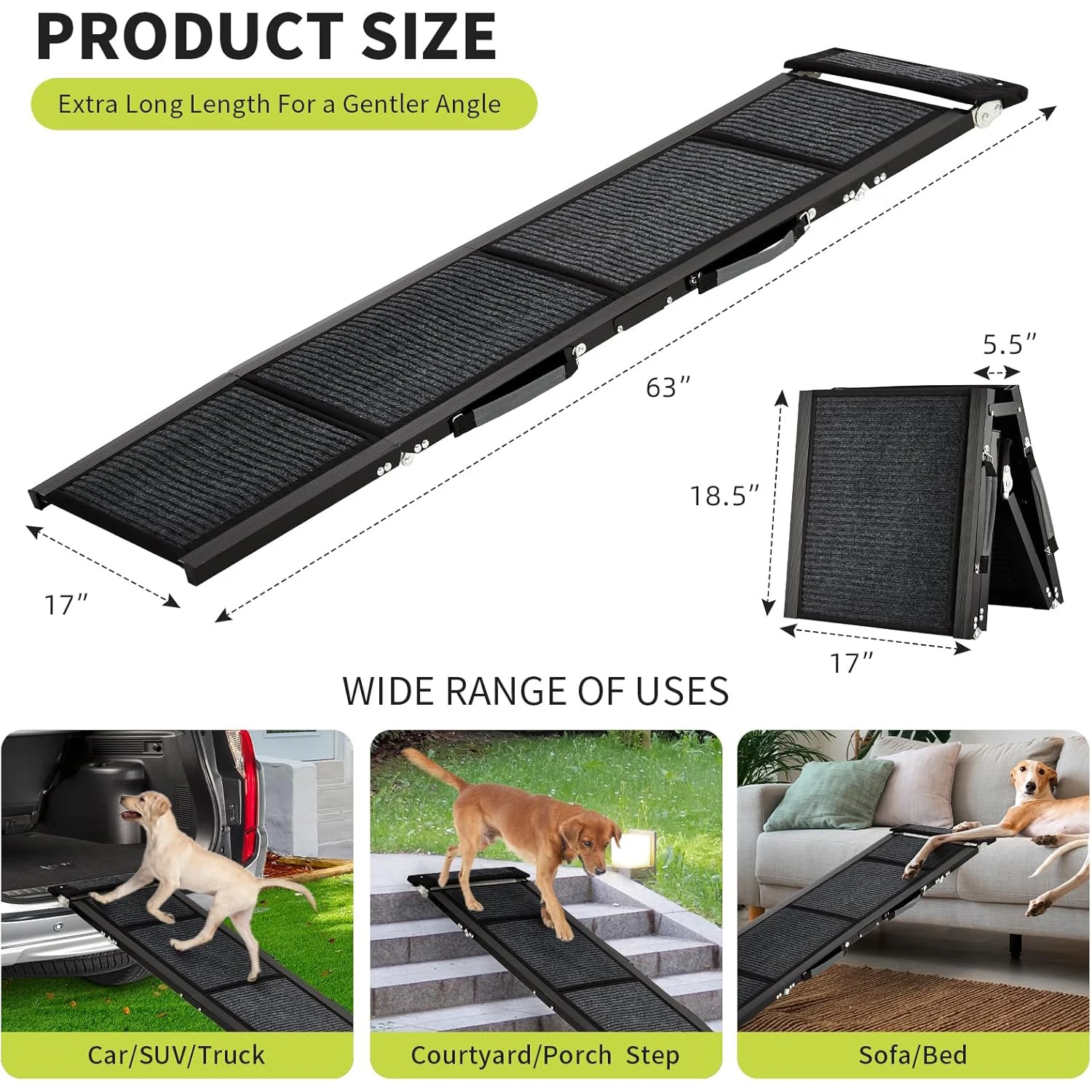 🐕Upgraded Quad Fold Half Design:Unlike other dog car ramps on the market that can only be folded in two or three, our dog ramp can be folded in four and the upgrade placed on the car adds a half section to make the ramp more stable and safer for dogs to get on and off. the dog ramp stairs are perfect for dogs to get into cars, suvs, trucks, high beds and couches.