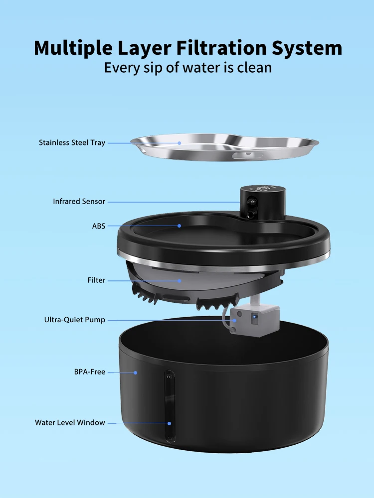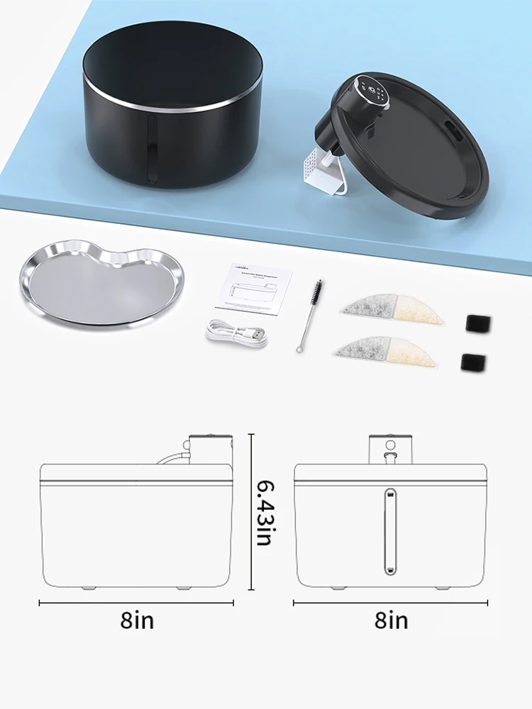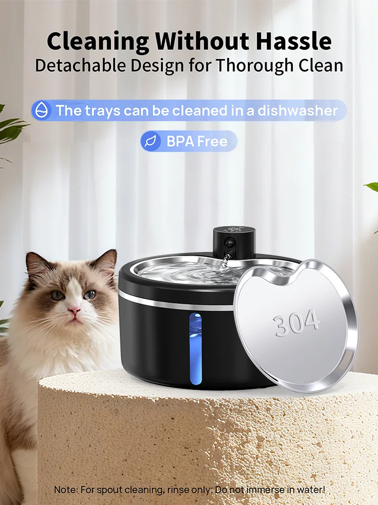 SPECIFICATIONS Battery Included: Yes Brand Name: LABEKA Choice: yes High-concerned chemical: None Is Smart Device: No LCD Display: No Material: Stainless steel Max Output: 2000g Min Output: 50g Origin: Mainland China Power Source: Battery,Charge Time Setting: NO(AE存量)** Type: cats With Water Dispenser: Yes Noted/Tips Clean tank & pump weekly Replace filter every 2–4 weeks Tank…