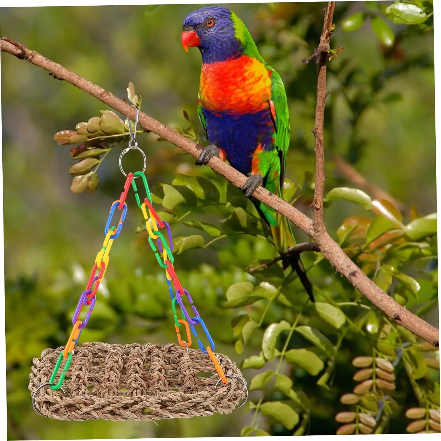 The swinging platform promotes exercise, helps to develop coordination and balance skills and also provides a comfortable alternative rest area, releasing stress, relieving boredom for birds.
